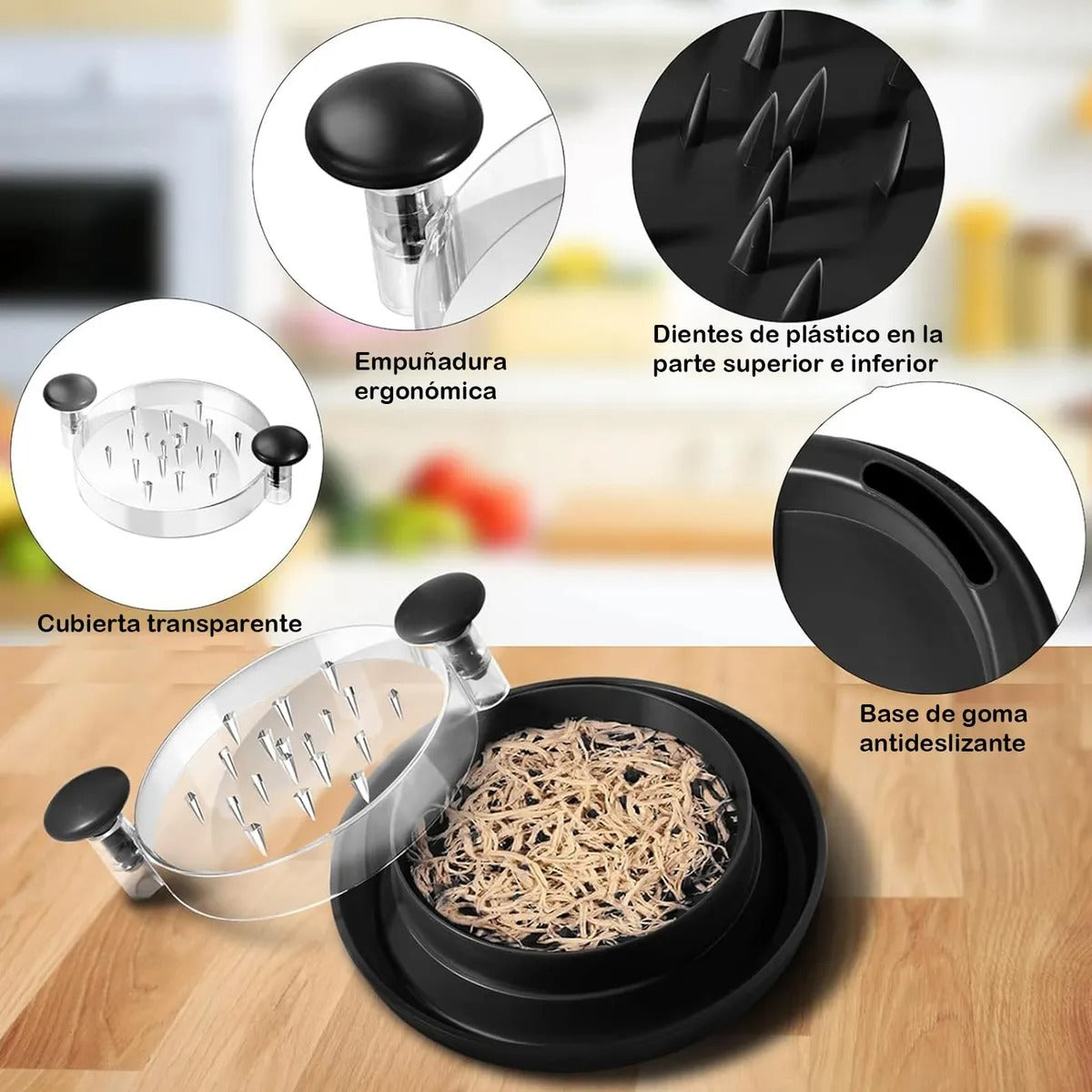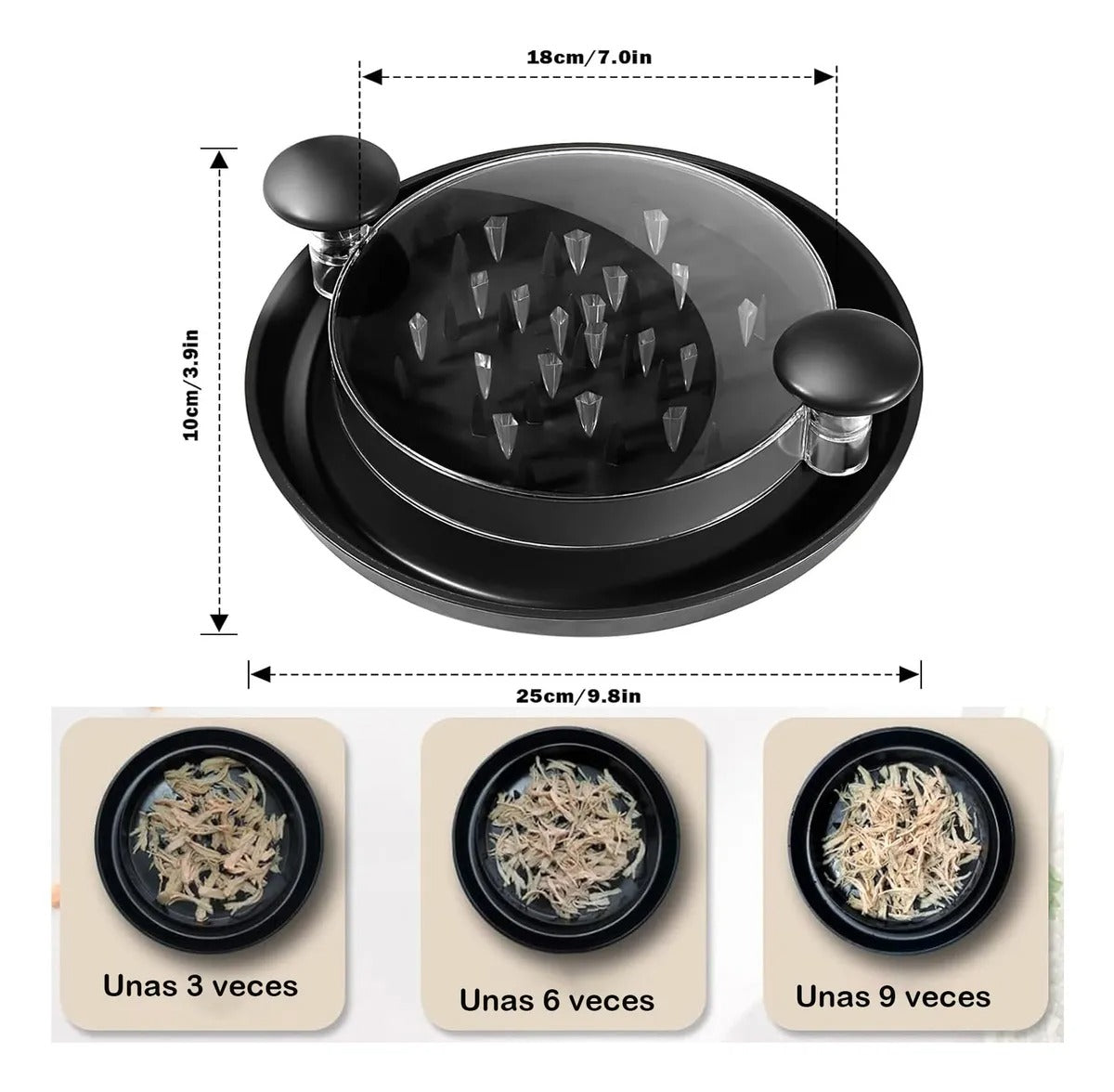 ⚡ Listo en menos de 10 segundos: desmecha pollo, cerdo, res o vegetales sin esfuerzo.