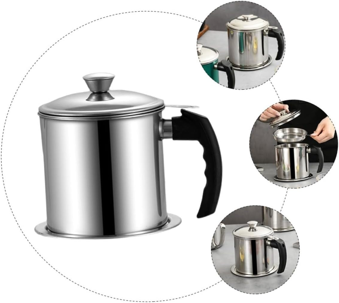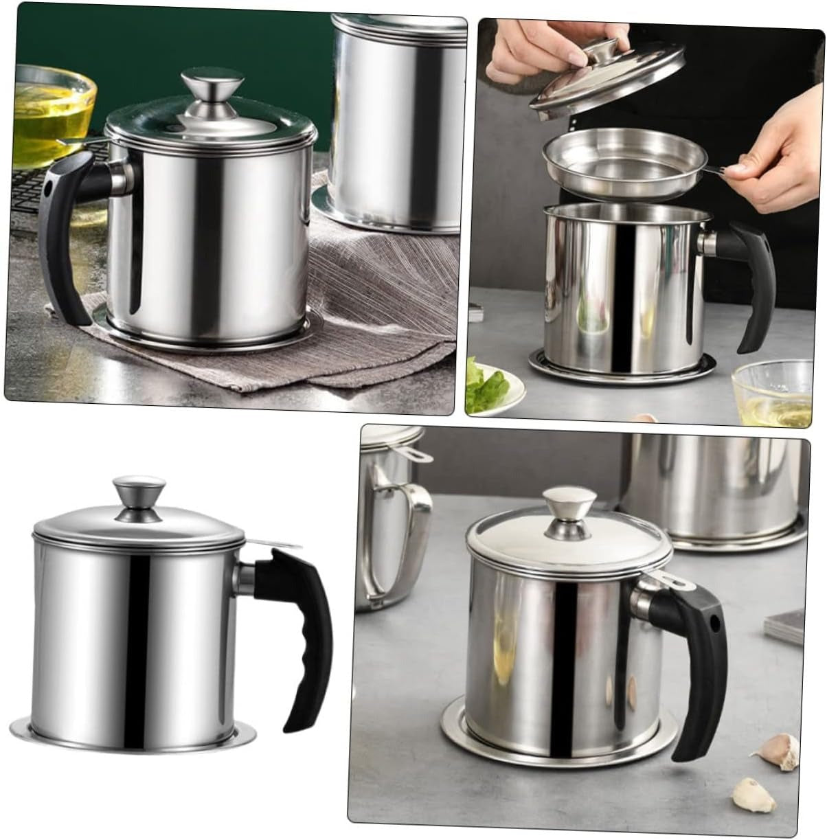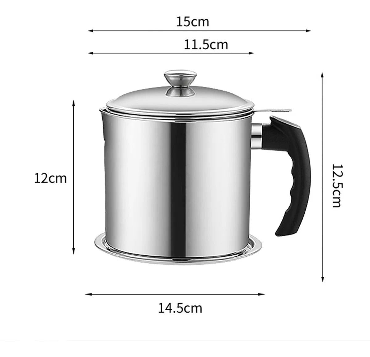 Olla Coladora de Aceite de Acero Inoxidable con Malla Fina – Almacenamiento Seguro y Práctico