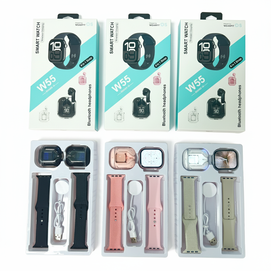 El Smartwatch W55 Super Set es la combinación perfecta entre tecnología, comodidad y estilo. Este innovador dispositivo 2 en 1 integra un reloj inteligente y auriculares Bluetooth inalámbricos dentro del mismo estuche de carga, ofreciéndote una experiencia completa en un solo producto. Ideal para entrenar, trabajar, viajar y mantenerte conectado durante todo el día.
